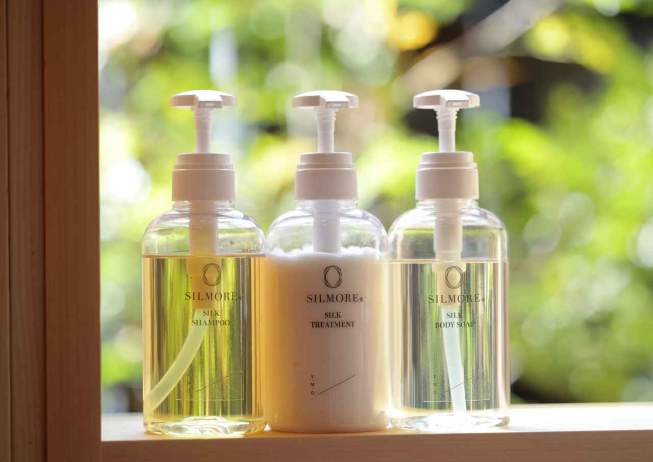 SILMORE®(シルモア)は、愛媛県大洲の養蚕農家が手作業で育てた高品質な繭から作られています。保湿力と抗酸化作用に優れたシルク成分が、肌や髪にハリと潤いを与えます。