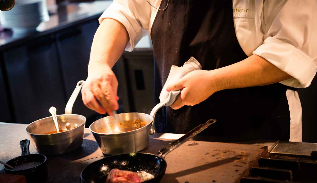 披露宴でのお料理をご提案するとき。お料理へのご要望以外のことも、いろいろとお聞きします。おふたりが結ばれた経緯や、思い出の場所、共通の趣味など。むしろ、お料理と直接関係がなさそうなお話をしている時間の方が長いかもしれません。けれども、お伺いした内容はすべて、お料理のヒントになっています。新郎新婦さまがいちばん大切にしていることを、食材や盛り付けなどで表現する。それが、プロフェッショナルとしての私たちの使命だと考えています。
