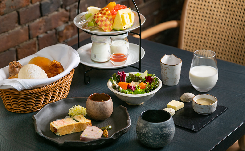 We offer a Western-style breakfast made with fresh, local ingredients from Hakodate. Guests can enjoy a menu focused on local produce, including salads, egg dishes, herring rillettes, and Hokkaido milk and fruits.