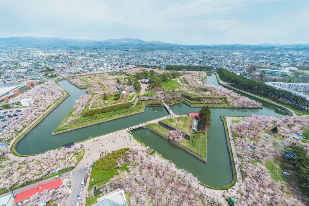 広大な公園には約1500本の桜が咲き、春には星形いっぱいに満開の桜が広がる夢のような景色が楽しめます。